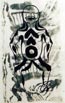 Pintura acrílica sobre papel pintado montado sobre tríptico móvil en tres tableros, abierto 180 x 60 cm.