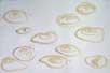 Un archivo de nidos construidos y artificiales. Hay aproximadamente 20 nidos que tienen un tamaño similar al de un nido de gorrión.